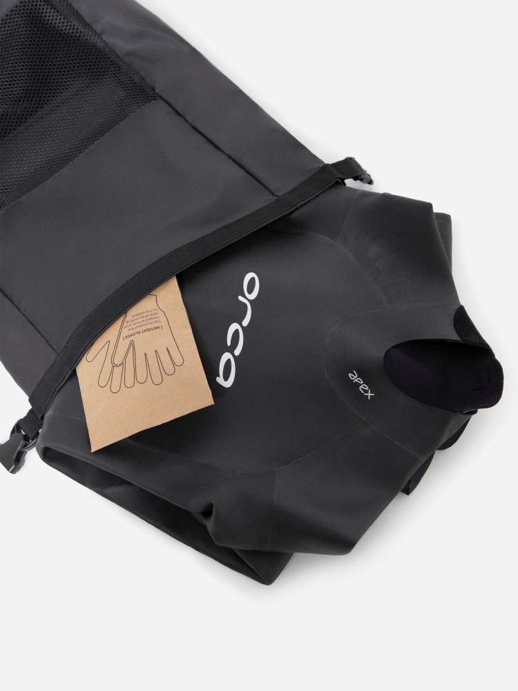 Kupując Apex Flex V2, otrzymujesz praktyczny plecak siatkowy i rękawiczki materiałowe, które ułatwiają przechowywanie i bezpieczne zakładanie pianki bez ryzyka uszkodzenia materiału.