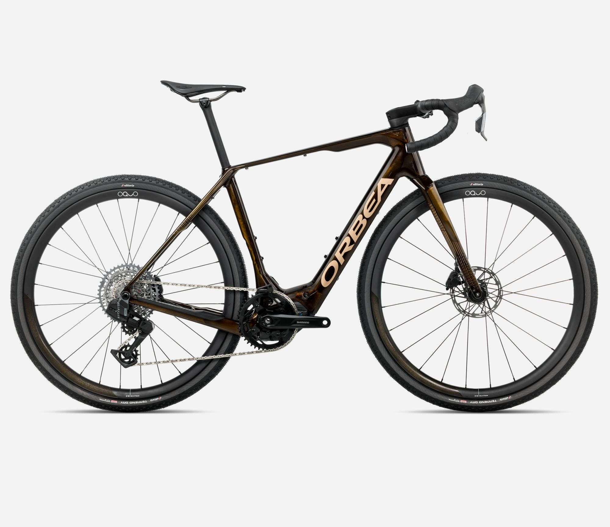 Napęd SRAM Rival XPLR AXS w wersji 13-rzędowej działa bezprzewodowo, precyzyjnie i niezawodnie, a karbonowa rama i widelec zapewniają doskonały balans między sztywnością a komfortem. Dopełnieniem zestawu są karbonowe koła Oquo RC30TEAM i szerokie opony Vittoria Terreno Dry 700x45c, które doskonale sprawdzają się zarówno na szutrze, jak i w lekkim terenie.